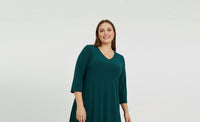 Entdecken Sie die Eleganz von Tannengrün – ein tiefer, edler Farbton, der Ihrer Garderobe einen Hauch von Luxus verleiht. Unsere neuen Dolce-Modelle in diesem satten Grün sind wie geschaffen für die Festtage und eignen sich gleichzeitig perfekt für Büro und Alltag. Gefertigt aus unserem charakteristischen, weichen und dehnbaren Dolce-Stoff, bieten sie Komfort und Raffinesse bis ins kleinste Detail. Diese Mini-Kollektion umfasst drei Modelle: zwei elegante Kleider und eine Tunika mit dezenten Strassverzierungen. Ein Kleid besticht durch wunderschön ausgestellte Ärmel, die eine anmutige Silhouette zaubern, während das andere mit einem schmeichelhaften V-Ausschnitt und zarten Knöpfen überzeugt.